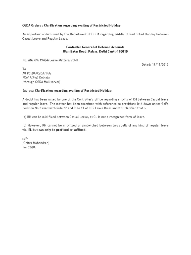 Clarification Regarding Availing Of Restricted Holiday - I'm taking a few days off to spend time with my family and friends so i won't be answering emails as.