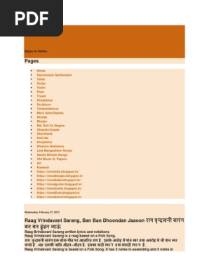 Notations Of Songs Gane Ki Lyrics V Sargam Ya Swarlipi Ya Notes ग त क सरगम य स वरल प Raag Vrindavani Sarang Ban Ban Dhoondan Jaaoon र ग व न द वन स र ग बन बन ढ ढन ज ऊ - Raag vrindavani sarang tutorial | ban ban dhundhan jaun with alaap and taan.